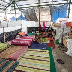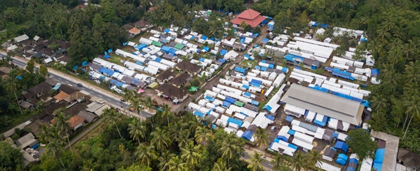 Nachdem ich Komodo, Padar und Flores besucht hatte, bin ich weiter nach Bali gereist. Da liess ich es mir nicht nehmen, den Vulkan Agung mit sicherem Abstand zu besichtigen. Dabei bin ich bei einem Evakuierungs-Camp vorbeigekommen. Beim Besuch dieser Zeltstadt wurde mir erklärt, dass sie pro Tag pro Person eine Tasse Reis zum Essen bekommen.