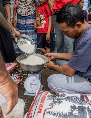 Es hat mich sehr beeindruckt, wie diszipliniert die Leute ohne Gedränge die Nahrungsmittel entgegennahmen. Es wurde alles gerecht verteilt, sogar der Reis wurde genau abgemessen…